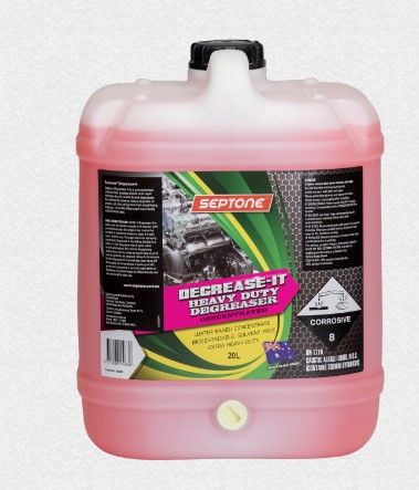 Degrease-All is a biodegradable, phosphate-free, water based degreaser formulated to remove heavy deposits of grease, oil, dirt and grime from machinery, engines, lawn mowers, outboards, concrete floors and most badly soiled substrates. Degrease-All contains sodium hydroxide and alkaline builders to efficiently penetrate and cut through grease, and its combination of biodegradable surfactants and a water-miscible solvent help to remove the grease during the hosing-off operation. The emulsified grease then quickly breaks from the aqueous layer when collected in a grease-trap, and the aqueous layer can be safely drained to the sewer.