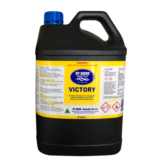 VICTORY is a specially formulated bleach cleanser sanitizer which will effectively clean and sanitize all bathroom, tiled and hard surface areas.