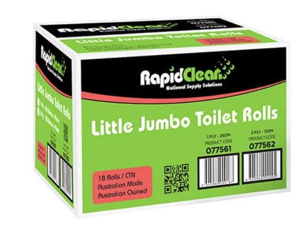 - RapidClean 2ply Little Jumbo Toilet Roll 120m x 18