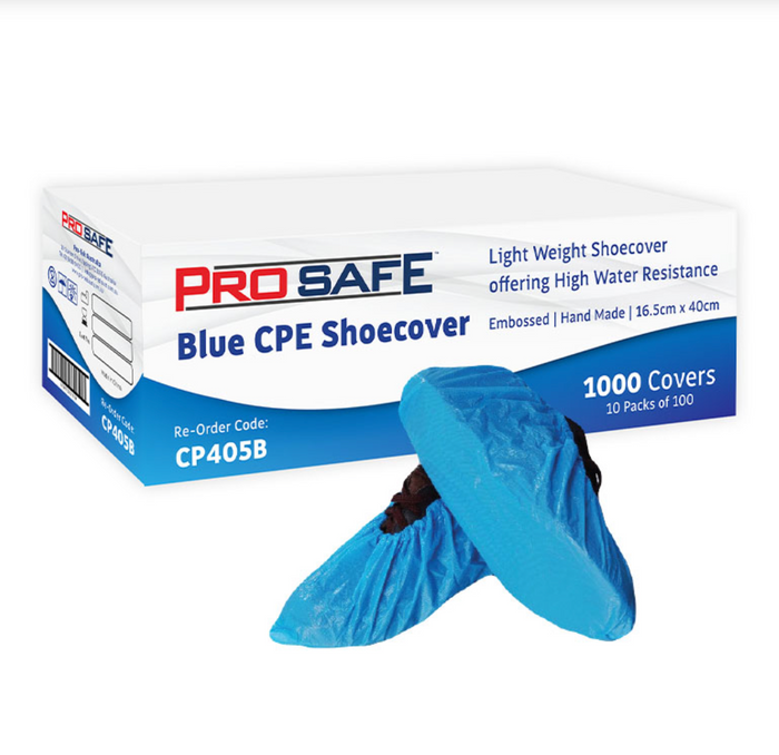 ProSafe Blue CPE Shoecover is hand made with a soft, non-linting elastic band. These blue shoe covers repel water and dust from the wearer.