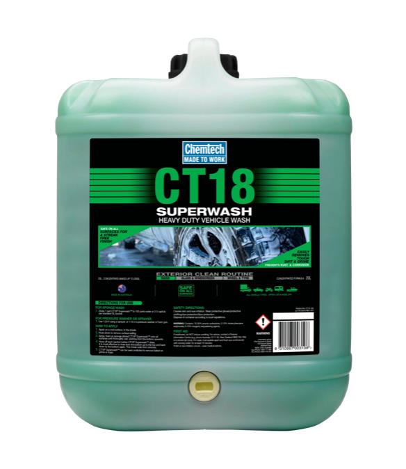 Keep your vehicles super clean with Chemtech CT18 Superwash, an exceptional product designed to eliminate dirt and mud from cars, trucks, motorbikes, caravans, boats and 4WDs. This versatile cleaner ensures a thorough wash, leaving your vehicles spotless. Chemtech CT18 Superfoam is the ultimate prewash foam soak that leaves no room for road grime and dirt.