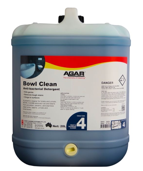 A powerful, antibacterial cleaner for toilets and urinals, BOWL CLEAN removes watermarks and stains from porcelain, ceramic and stainless steel sinks, basins, urinals and toilet bowls.