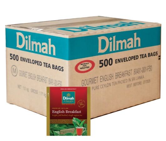 he Dimbula Valley consists of estates in and around Talawakelle, around 1,500 metres elevation. Tea from this region is known for the combination of strength, character and brightness, the perfect Breakfast Tea. This Dilmah Gourmet Selection English Breakfast Tea consists of 500 Individually Wrapped Foil Envelopes protecting taste and flavour.