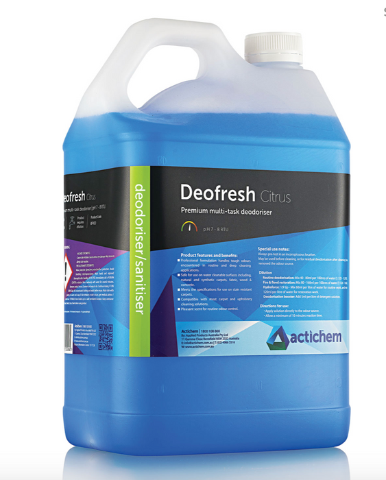 Deofresh is a professional deodoriser formulated to handle tough odours, provide routine odour control and a fragrance boost for cleaning solutions. The Deofresh formulation is tough enough to handle the every day mal-odours encountered by the cleaning professional. Added to this is a pleasant, fresh fragrance which leaves the cleaned area with a lingering clean scent.