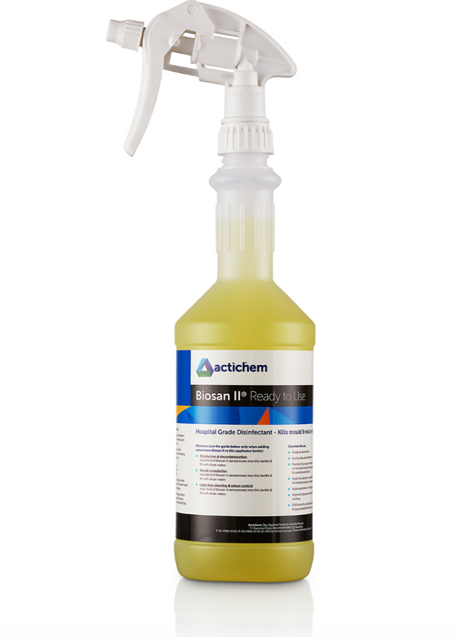 Biosan II Ready to use disinfectant is a hospital grade disinfectant which is a breakthrough in modern, innovative, cleaning and disinfection technology. Biosan II is a single-step, hospital grade, ready to use disinfectant with awesome cleaning power and is effective against a wide variety of pathogenic micro-organisms including viruses, bacteria, fungi, mould and mildew.