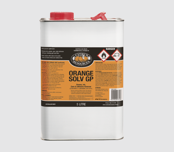 A powerful water-soluble solvent that is an alternative to strong petroleum, chlorinated or glycol ether solvents used for heavy duty cleaning and degreasing. The main applications for ORANGE SOLV-GP include grease and tar removal from engines and parts, graffiti removal from solvent resistant hard surfaces and chewing gum and stain removal from carpets. If used as a carpet spotter, it must be thoroughly rinsed to ensure all stain residues are removed.