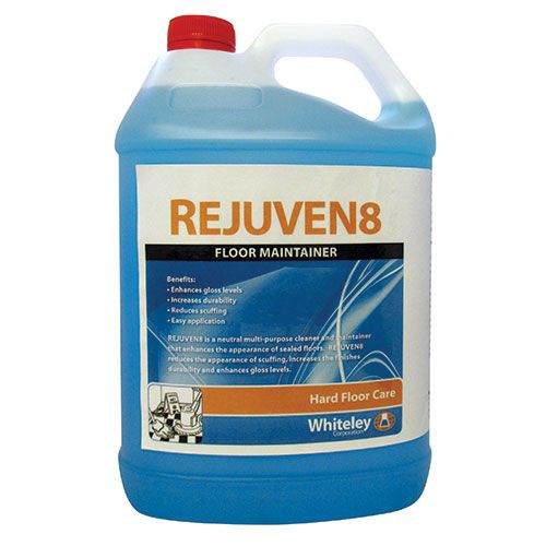Whiteley Rejuven8 is a neutral multi-purpose cleaner and maintainer designed to enhance the appearance of worn floor finishes. Increases the durability of floor finishes and enhances gloss levels. Effectively repairs scratches and reduces the appearance of scuffing, black heel marks, ground in dirt and surface scratches.
