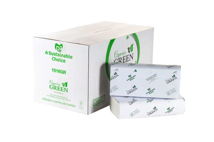 Make a sustainable choice with the interleaved towel from the Caprice Green range. The portion-controlled towels are more than convenient — they reduce waste and are manufactured from 100% recycled material. This environmentally responsible option is compatible with our DIL, DPILB and DPILW towel dispensers.