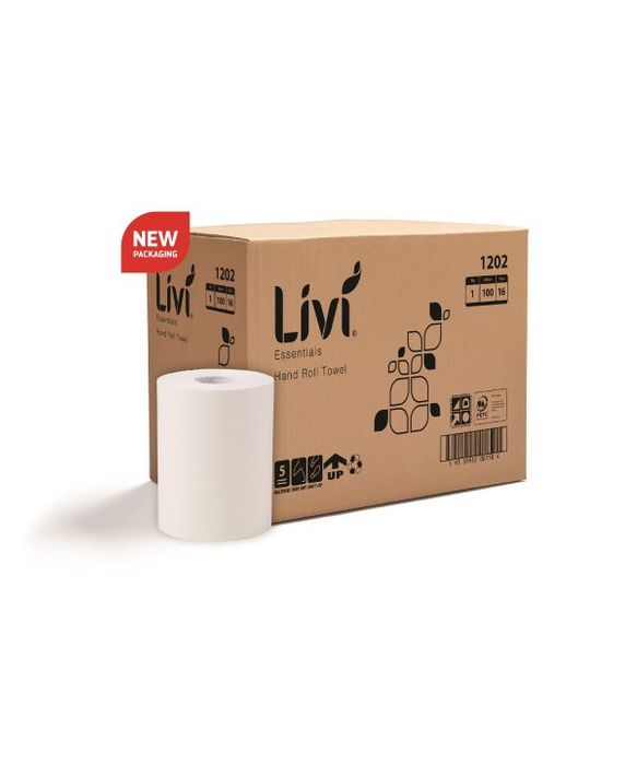 An environmentally certified hand towel roll to complete busy washrooms. Livi Everyday hand roll towels are used in high volume environments, perfect for wiping up light spills. The 100m roll towel also dries hands quickly and effectively. These disposable roll towels are PEFC certified guaranteeing environmentally responsible purchasing. Embossed for extra absorbency. Ideal for everyday use.