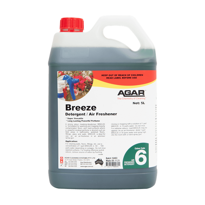 BREEZE is a strong odour-masking deodoriser, formulated for washing and mopping heavily contaminated floors and hard surfaces where a powerful residual perfume is desired.
