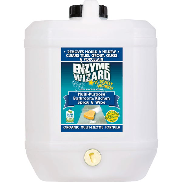 The enzymes in our Multi-Purpose Bathroom / Kitchen Spray and Wipe break down stains & odours into their basic elements. Carbon, hydrogen and other elements readily integrate with the environment instead of polluting it. Even mineral buildups like calcium and lime simply fall apart when our enzymes break down the organic ‘glue’ that holds it in place. Plus, our enzymes completely remove odours, leaving the room smelling fresh and truly clean without strong fragrances.
