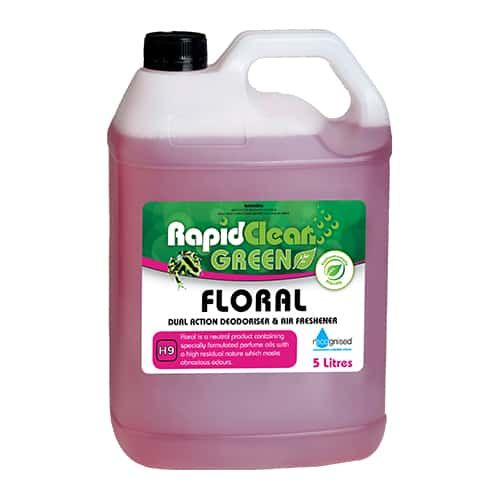 RapidClean Floral Deodoriser and Air Freshener is a dual action deodoriser and air freshener. It contains a broad spectrum bactericide and specially formulated floral perfume oils with high residual nature. This enables the product to sanitise and deodorise with a single application. Floral can be used as a spray and wipe or for light mopping.