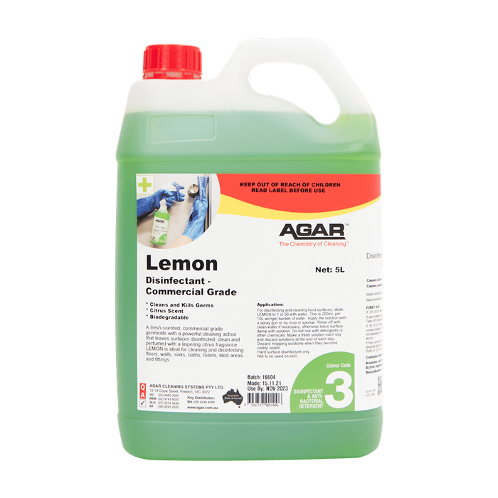 LEMON is a fresh, citrus-scented Commercial Grade Disinfectant with a powerful cleaning action that leaves surfaces disinfected, clean and perfumed with a lingering lemon fragrance.