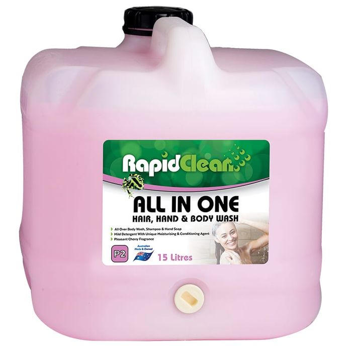 RapidClean All In One has been designed as an “all over” body wash, shampoo and hand cleaner. All In One is suitable for all amenities such as toilets, change rooms and showers, as well as