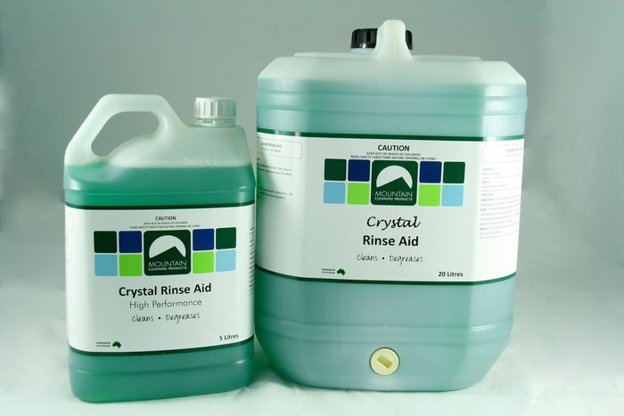 Crystal Rinse Aid works in the rinse-cycle, to thoroughly clear away detergent and food residues.