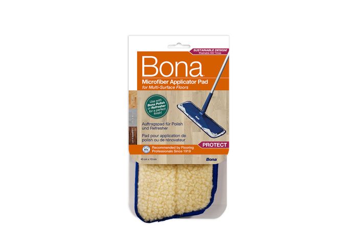 Designed to be used with all Bona Mops, including the Bona Spray Mop (sold separately), the Bona Microfibre Polish and Refresher Applicator Pad is ideal for applying Polish to your tile, stone & laminate flooring, or Refresher to your timber floors. The Applicator Pad easily attaches to the Bona Mop base using simple fastening tape strips. The Polish and Refresher Applicator Pad is specially designed to allow even application of Polish or Refresher, leaving no streaks or dulling residue behind. The Applicator Pad is machine washable and reusable up to 300 times.