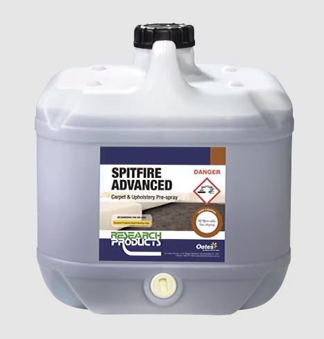 As a pre-spray it is suitable for use on regular and new low-profile style carpets and upholstery to remove greasy, stubborn stains. Suitable for wool, wool blend and olefin and satin treated nylon fibre carpets. SPITFIRE ADVANCED rinses freely and allows more dirt and greasy soil to be removed leaving it fresh and brilliantly clean.