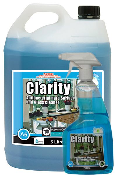 CLARITY can be used to clean all types of hard surfaces in one convenient spray ‘n’ wipe application. Surfaces include windows, mirrors, benches, cupboards, cooktops and appliances. It will remove all types of soils including greasy food soils around cooking preparation areas.