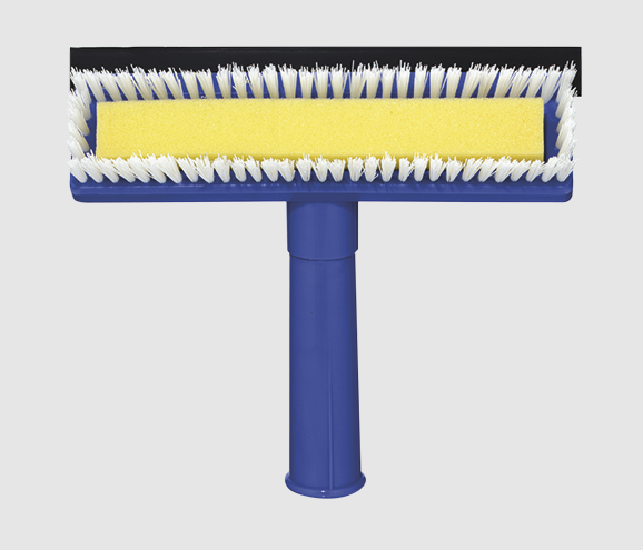 • Triple action, sponge, bristles and blade, washes, scrubs and squeegees surface dry